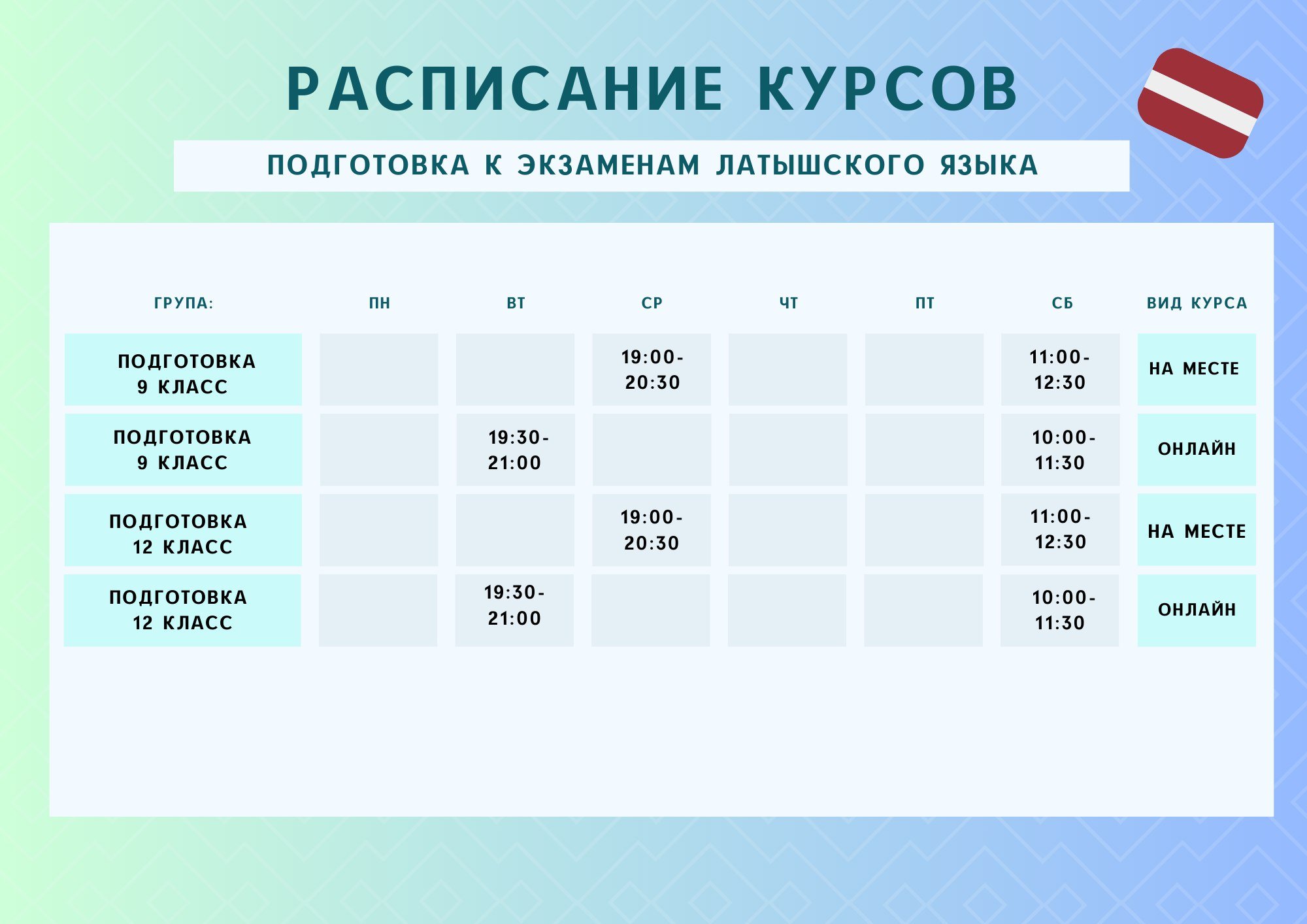 Расписание курсов